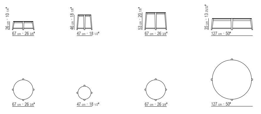 Утонченные конические ножки создают эффект легкости, а термопластичные наконечники обеспечивают устойчивость. Доступен в четырех размерах, что позволяет комбинировать модели для создания стильных композиций. Идеально дополняет мебель Flexform, подчеркивая статус интерьера.
